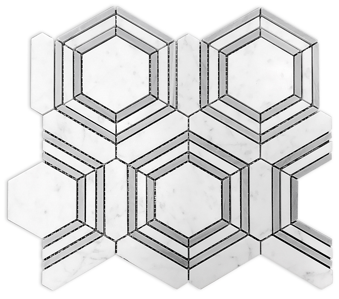 Home > Carrara Bianco Honed Hexagon with Bardiglio Marble Strip Mosaic